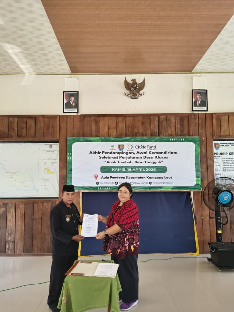 Kampung Laut — Kegiatan bertajuk “Akhir Pendampingan, Awal Kemandirian: Selebrasi Perjalanan Desa Klaces” diselenggarakan pada Kamis, 16 April 2026, bertempat di Aula Pendopo Kecamatan Kampung Laut. Kegiatan ini menjadi penanda berakhirnya program pendampingan yang telah berlangsung selama lima tahun, sekaligus momentum untuk mendorong kemandirian masyarakat Desa Klaces dalam melanjutkan berbagai program yang telah dijalankan.