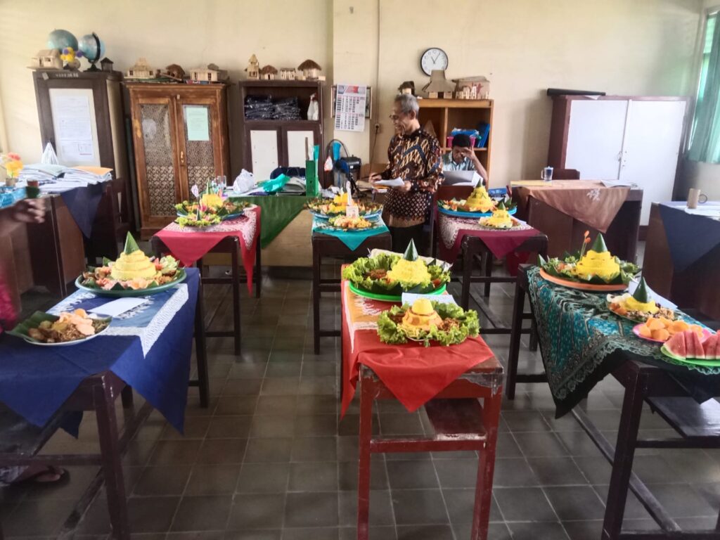 Usai pelaksanaan upacara, kegiatan dilanjutkan dengan lomba membuat tumpeng yang diikuti oleh seluruh siswa. Setiap kelas dibagi menjadi dua kelompok, sehingga seluruh siswa dapat terlibat secara aktif dalam proses persiapan hingga penyajian. Dalam kegiatan ini, siswa bekerja sama untuk menyiapkan tumpeng sesuai dengan kreativitas masing-masing kelompok. Suasana kebersamaan dan kerja sama terlihat jelas selama kegiatan berlangsung, di mana setiap anggota kelompok memiliki peran dalam menyusun hasil karya mereka. Lomba ini tidak hanya menjadi ajang kompetisi, tetapi juga melatih kekompakan dan keterlibatan siswa dalam aktivitas bersama.